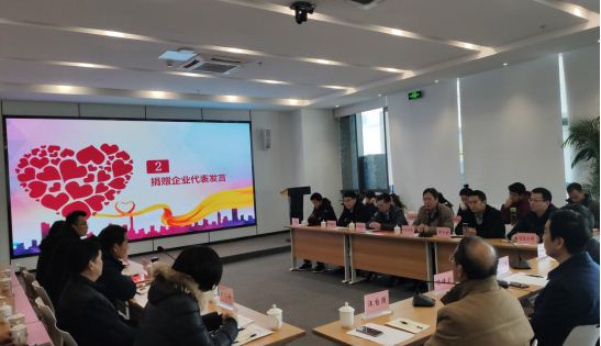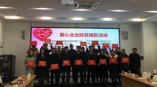 會上,舉行了愛心企業代表向貧困村的集體捐贈儀式。