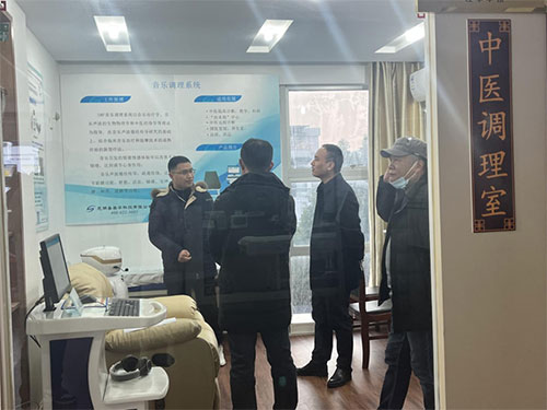 隨后章主任一行來到我司中醫調理室,并饒有興致的聽取工作人員介紹中醫調理室的成立背景、各模塊組成及工作原理、項目實施及落地情況,在工作人員演示完中醫音樂調理系統之后,對公司將中醫理論與人工智能融合表示高度贊賞,并鼓勵企業加大宣傳推廣力度。